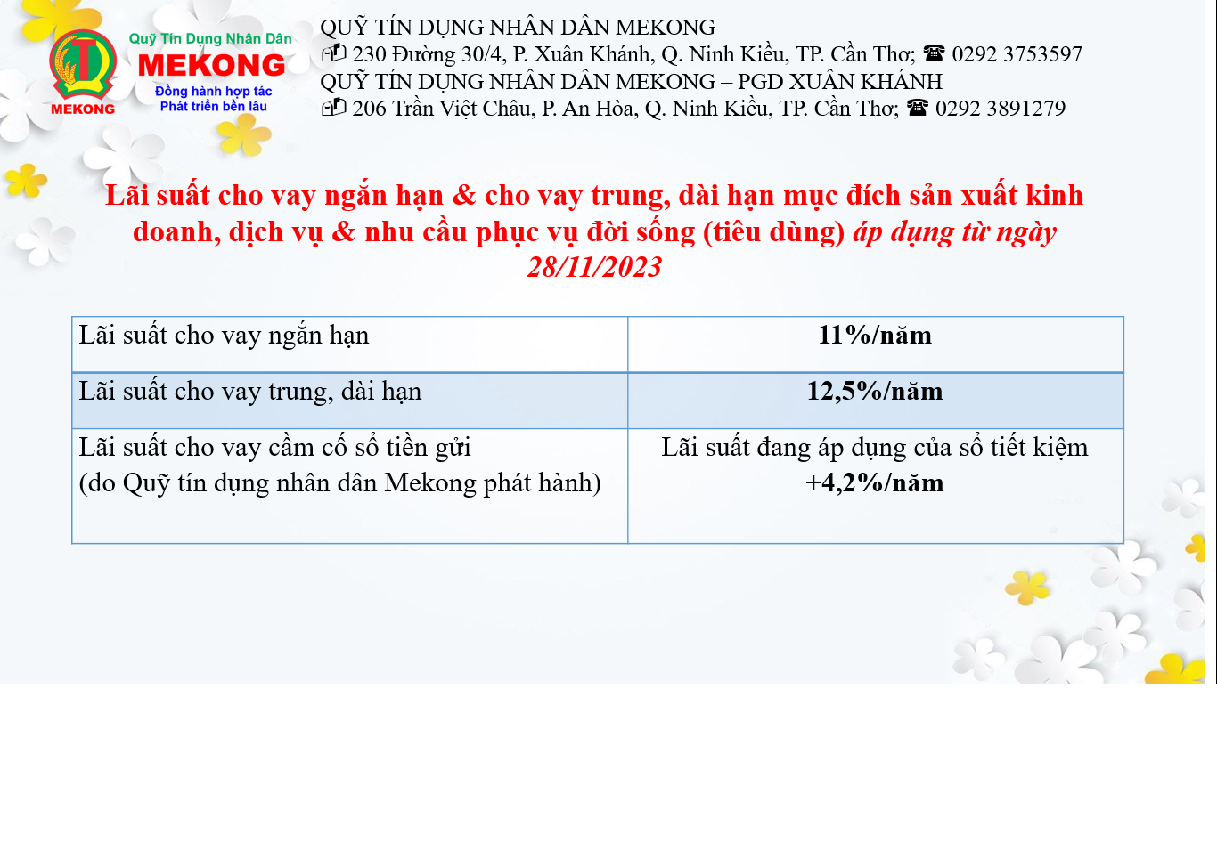 LÃI SUẤT TIỀN GỬI TIẾT KIỆM ÁP DỤNG TỪ NGÀY 03/02/2026
